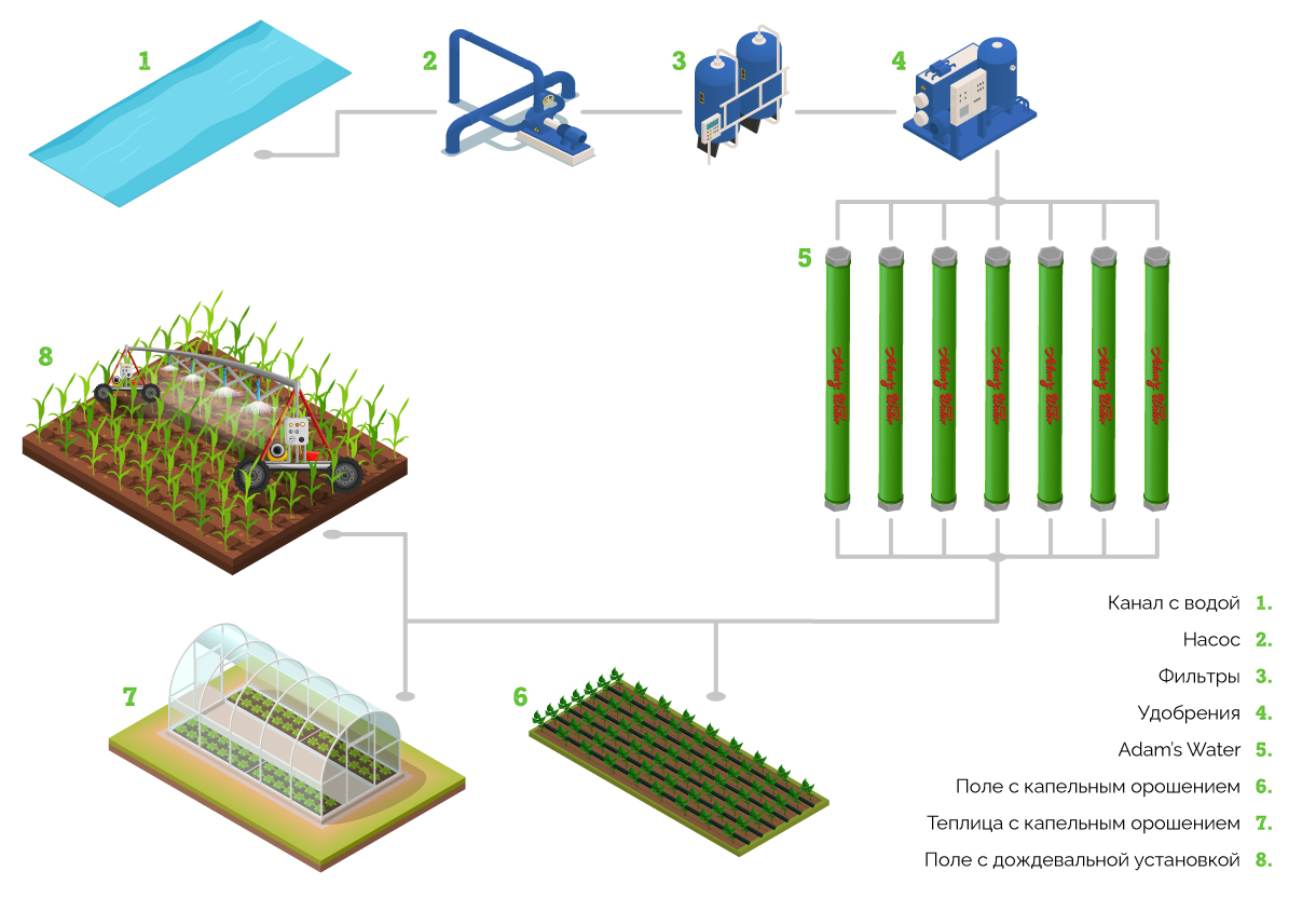 Система разрушает сложные кластеры солей. Имеет прямое влияние на поливную воду с значениями pH 7> и 150> ppm.